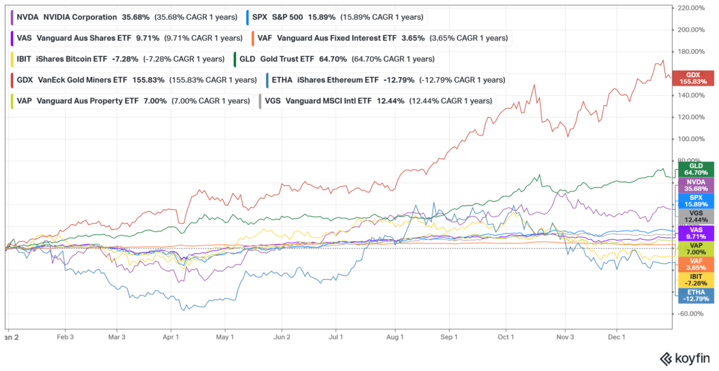 Speaking of interest rates, the Vanguard Australian Fixed Income ETF (which holds a lot of government bonds) was up 6.07% in late October, but that return trickled away to a 3.65% gain for the full year when interest rates started to back up in November and December.